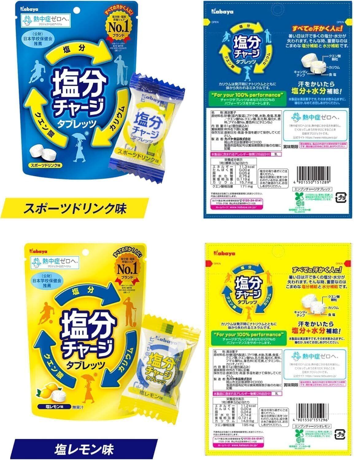 塩分チャージタブレッツ 熱中症対策 2種 詰め合わせ( 塩レモン味 スポーツドリンク味 )( 計100粒 ) 塩タブレット 塩飴 業務用 大容量