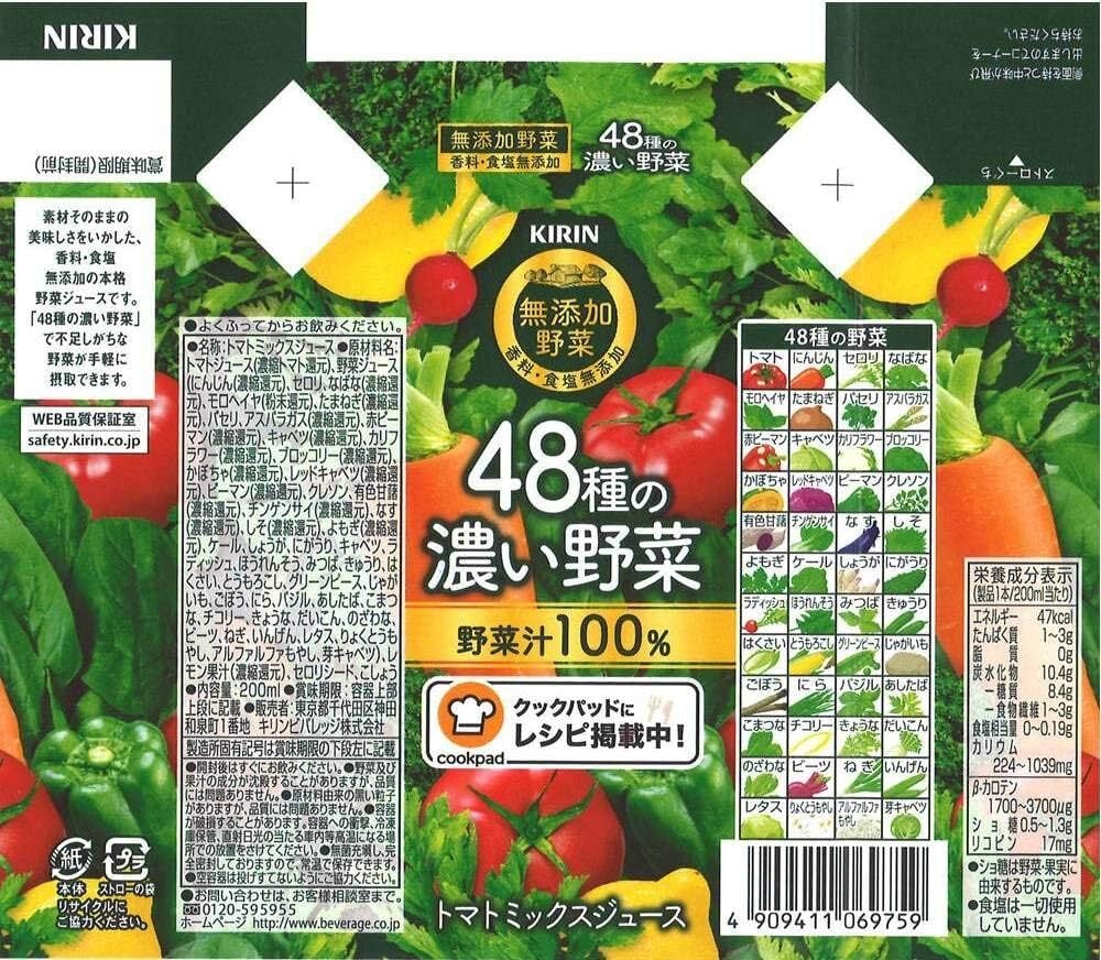 小岩井 キリン 無添加野菜 48種の濃い野菜 200ml×24本